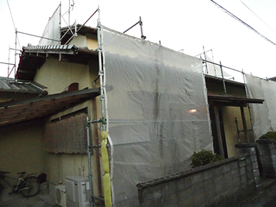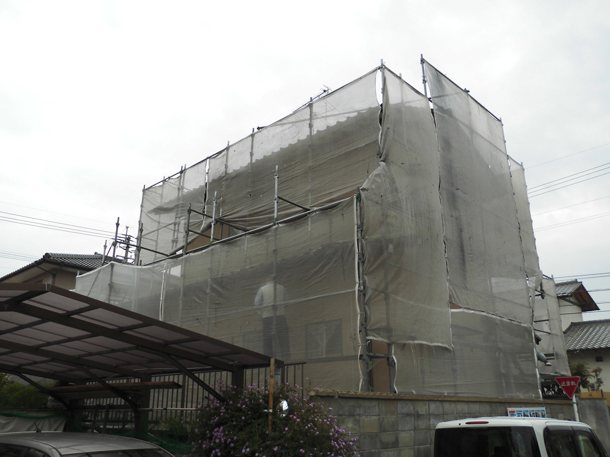 仮設足場を組みました。安全とご近所様への配慮です。さあ、始まります。