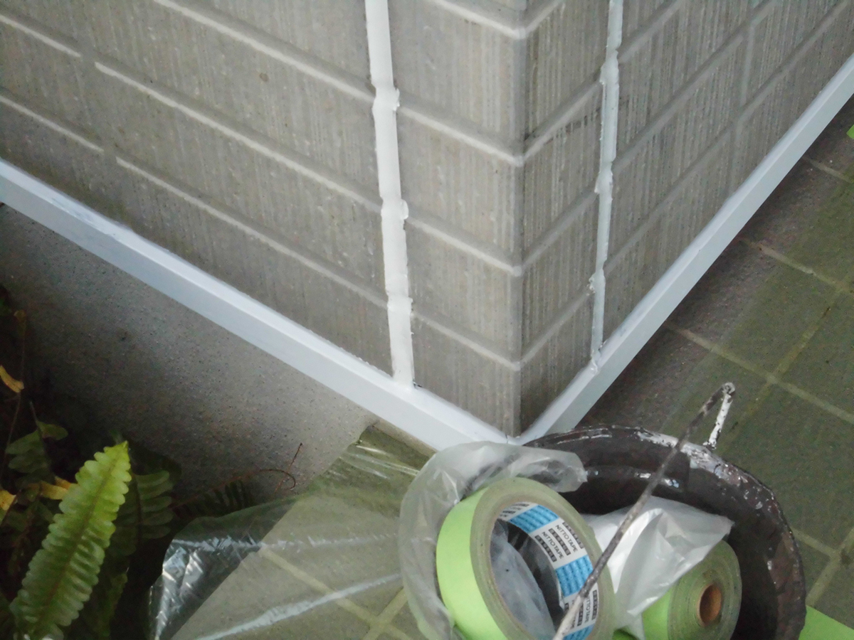 古い目地の交換です。サッシ(窓)周りも全て補修します。普通の家1軒で約3日かかる作業です。