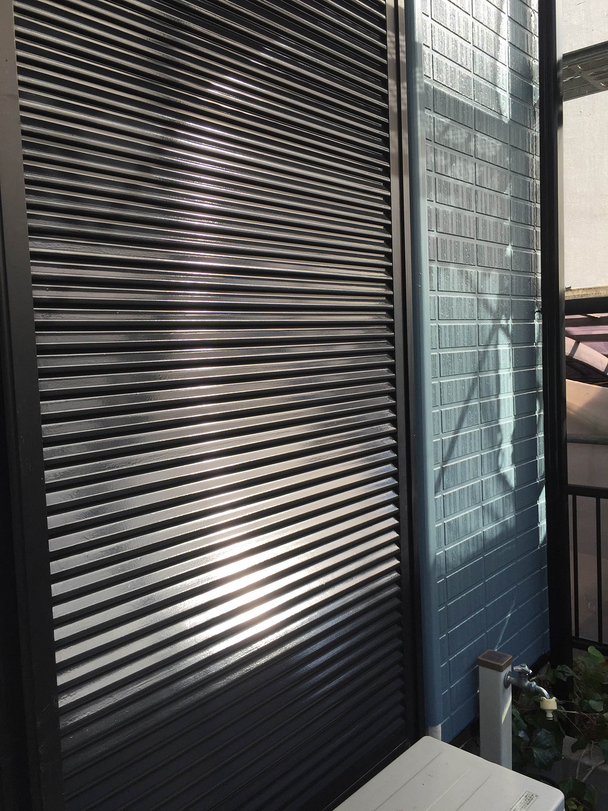 雨戸の塗装が終了。雨戸も鉄部なので、サビ落しをした後、錆止めを入れ、2液形シリコン塗料を2回に分けて塗りました。