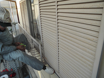 通気性のブラインド状の雨戸。このお宅で一番手間暇がかかったお仕事です。サビ落としから始めます。