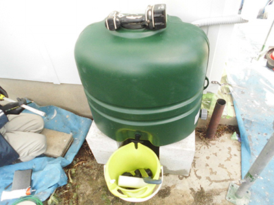 雨樋交換の際に雨水タンクを設営。施主様のかねてからの夢であり、お庭等のガーデニングに吏われます。これが本当のエコですね!