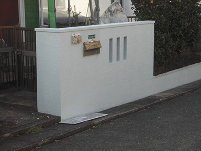 感謝の気持ちで表の塀も塗りかえ、新しく生まれ変わりました。外壁と同じ水性プレミアムシリコンを使用。大変お世話になりました!
