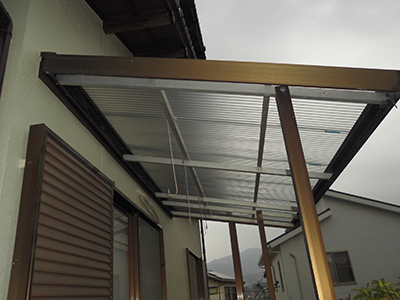 倉庫や車庫のタキロン(ポリ力ーボネー卜の波板)をこの機会に交換しました。気持ちいいですね!