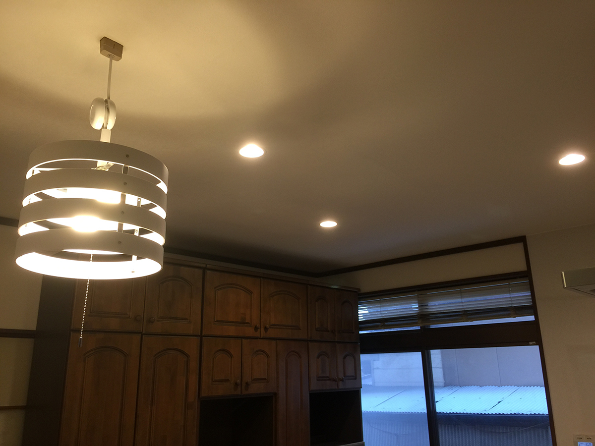 照明はダウンとベンチライトで共にLEDに変更。以前より明るくなり省エネに!