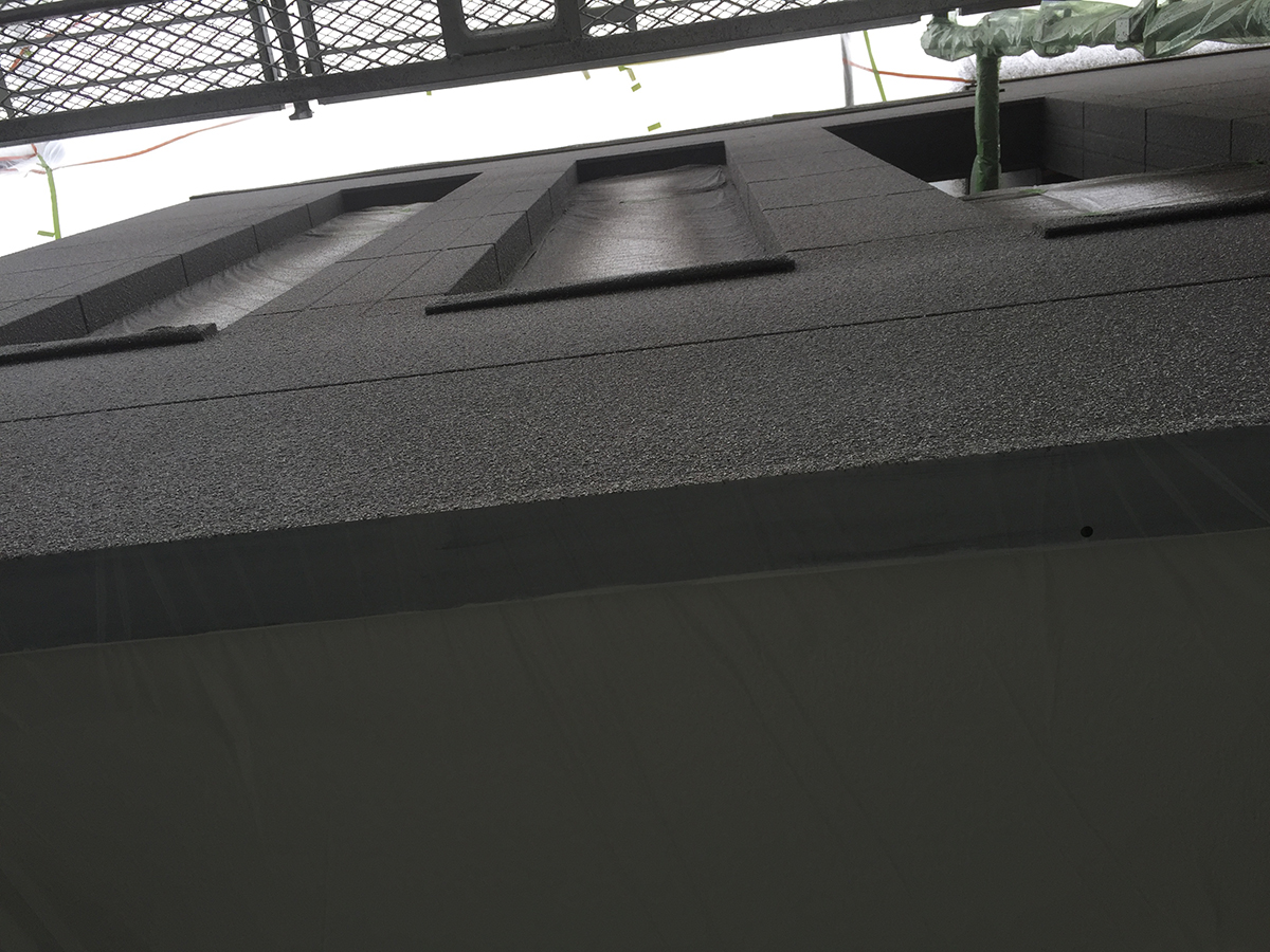 上塗り(色付け)2回目が終了しました。2液形シリコン塗料は仕上がりも高級感があり、苔等が付着しにくい高性能な材料です。