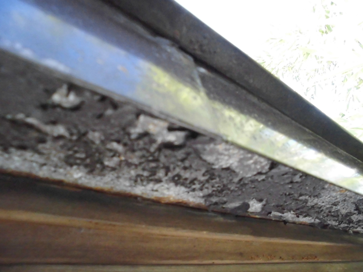 別の場所にもサビが見られます。補修で治すことは不可能です。雨水は目に見えない穴でも浸透します。