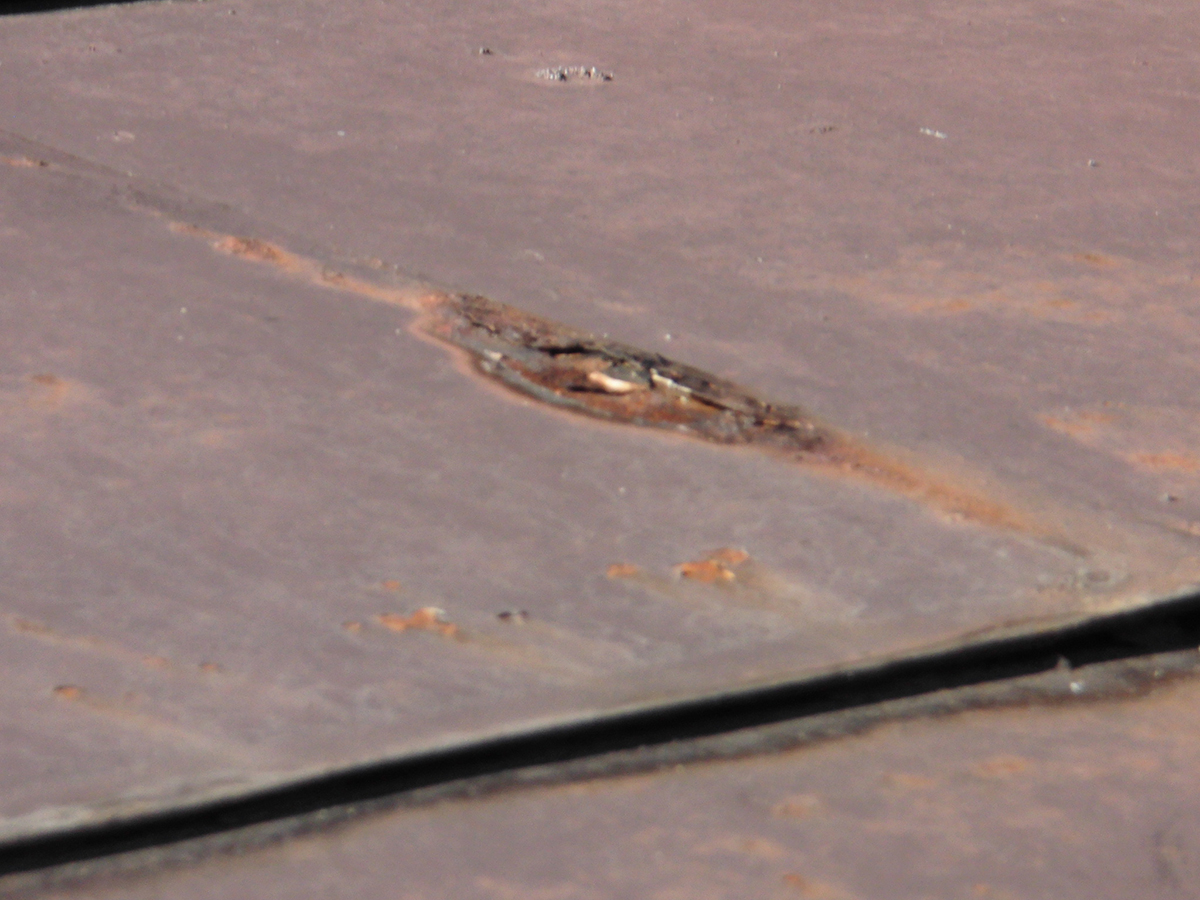 上から見ると小さな穴が開いています。サビは広がり腐食していきます。
